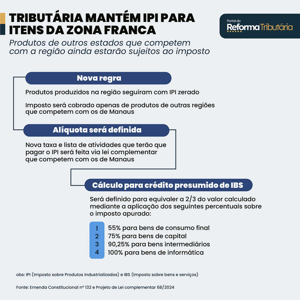 Com a reforma, o IPI continuará a incidir sobre as mercadorias similares às produzidas no Polo Industrial de Manaus.
