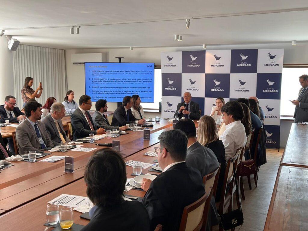 A ROIT e a Frente Parlamentar pelo Livre Mercado (FPLM) promoveram ontem (7.out.2025) um almoço de trabalho que reuniu parlamentares como Luiz Carlos Hauly (PODE – PR), Julia Zanatta (PL-SC), o secretário extraordinário para a reforma tributária, Bernard Appy e representantes do Serpro e do setor de empresarial. O evento contou com o apoio do Portal da Reforma Tributária.