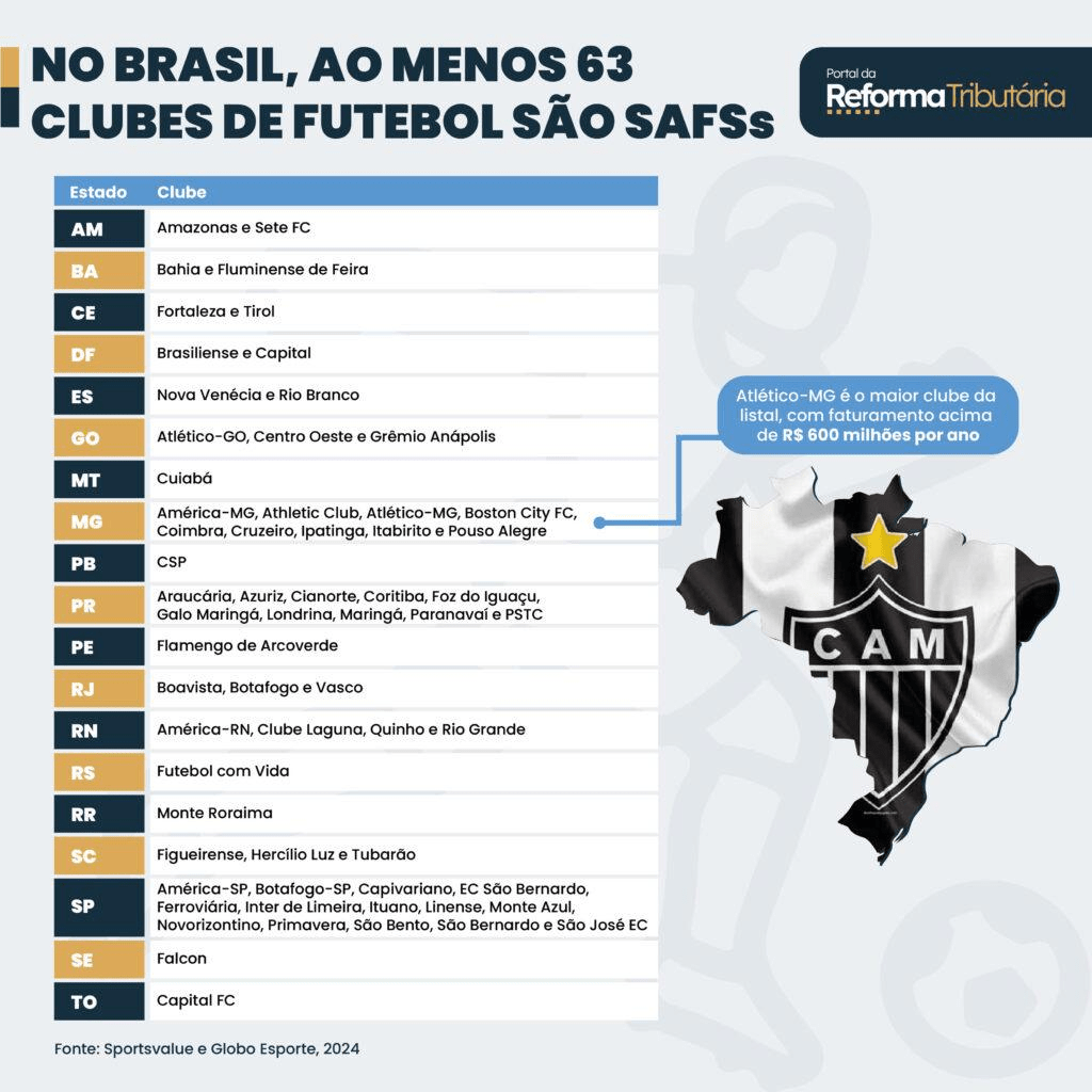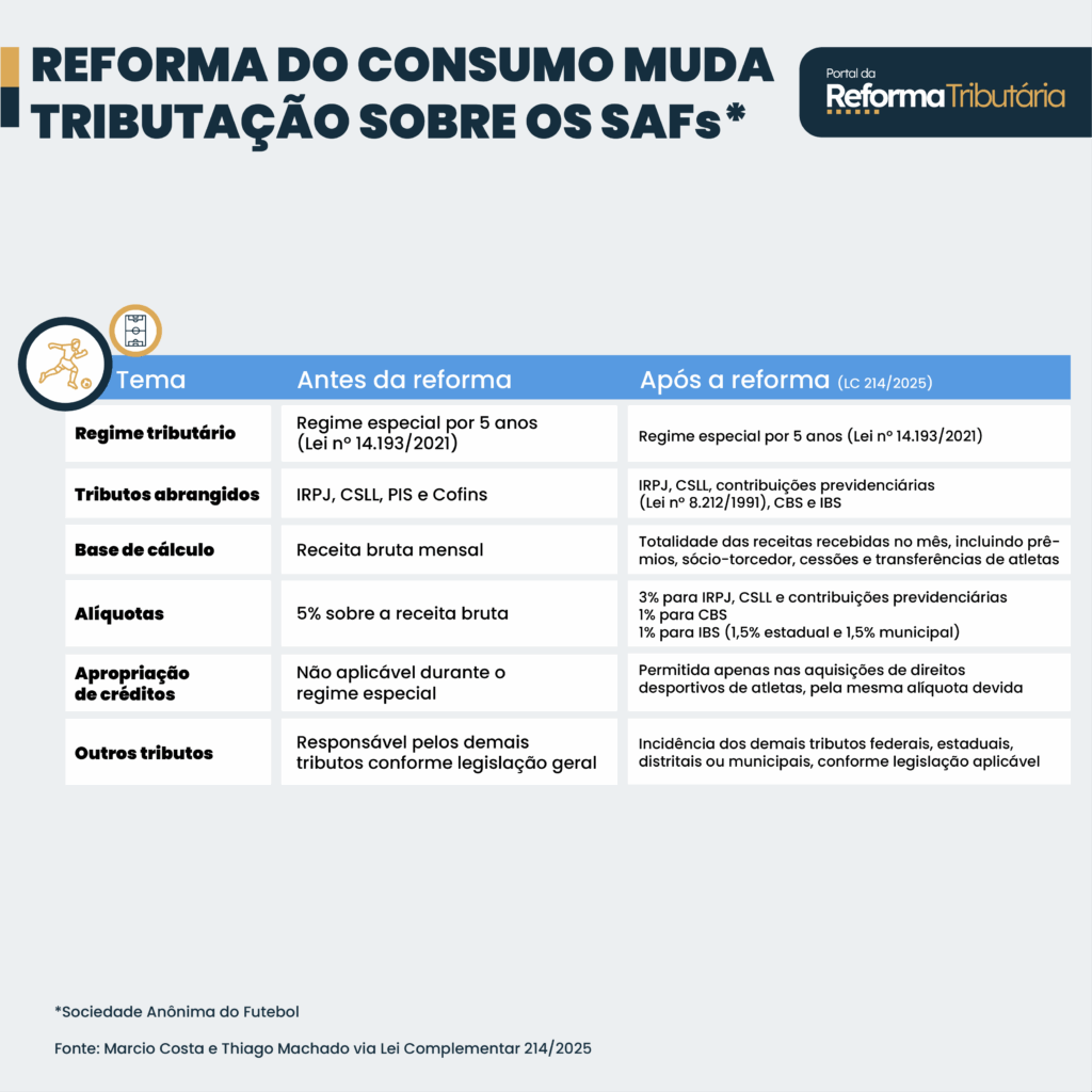 As SAFs (Sociedades Anônimas do Futebol) terão uma carga de 5%, de acordo com o projeto de regulamentação da reforma tributária (PLP 108 de 2024). Os deputados aprovaram a determinação na noite desta 3ª feira (16.dez.2025):