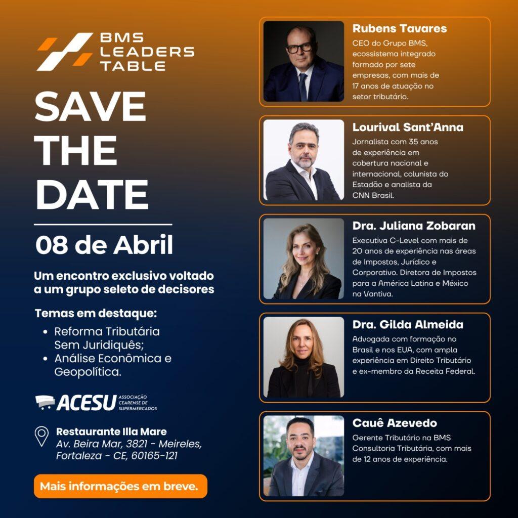 A BMS Consultoria Tributária realizará o evento “BMS Leaders Table”, que reunirá os principais temas no centro das decisões estratégicas do varejo alimentar: