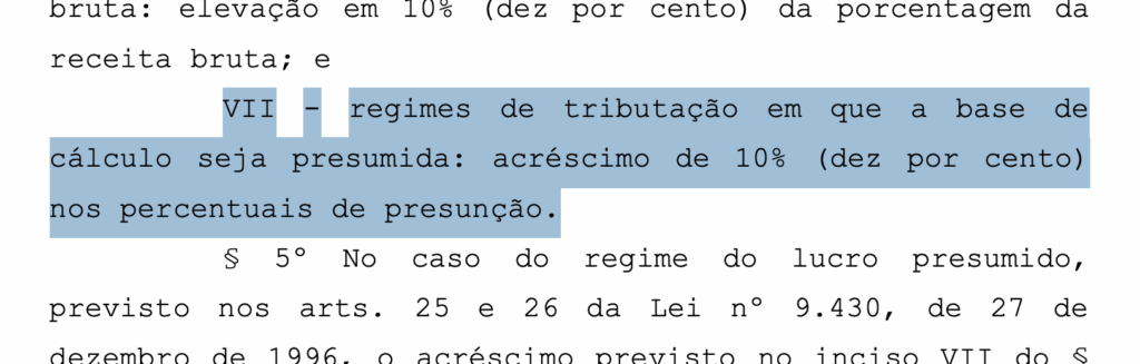 A nova lei eleva a base de cálculo em 10% nos percentuais de presunção, explica o tributarista e CEO da ROIT, Lucas Ribeiro.