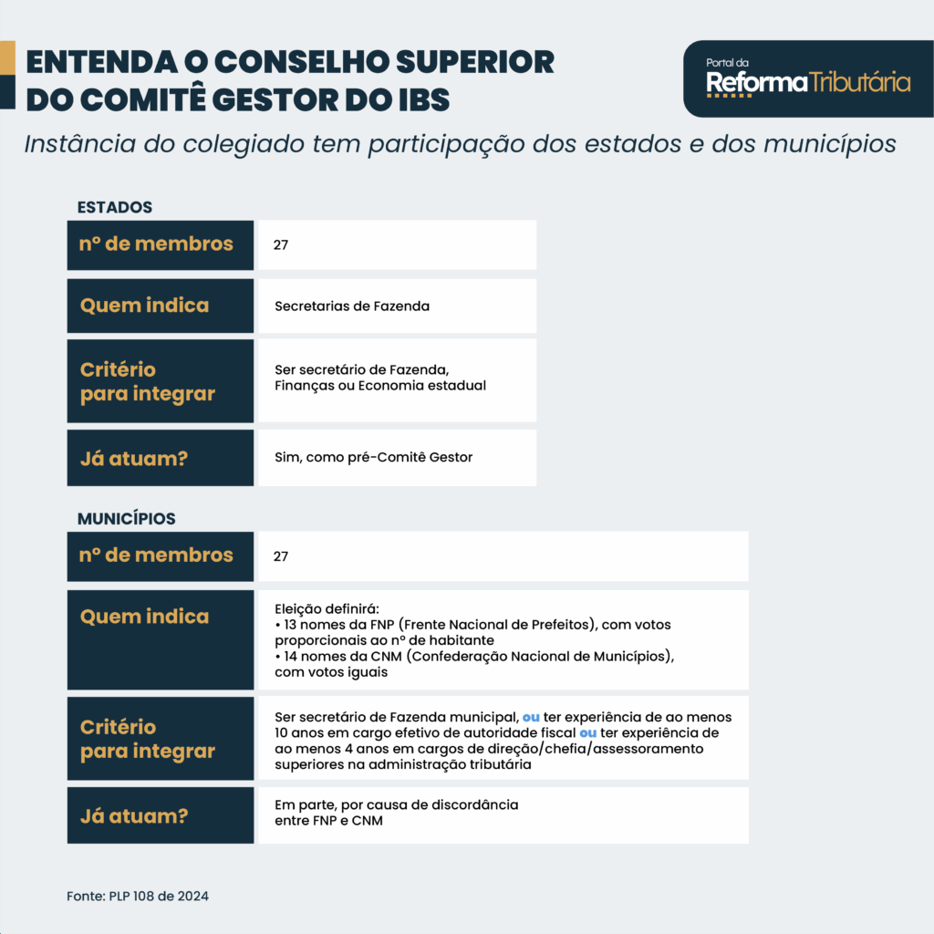 Com os integrantes definidos, os regulamentos infralegais do IBS e da CBS (Contribuição sobre Bens e Serviços) poderão ser publicados pelos entes federativos. O Portal já havia revelado que a publicação só viria em janeiro.