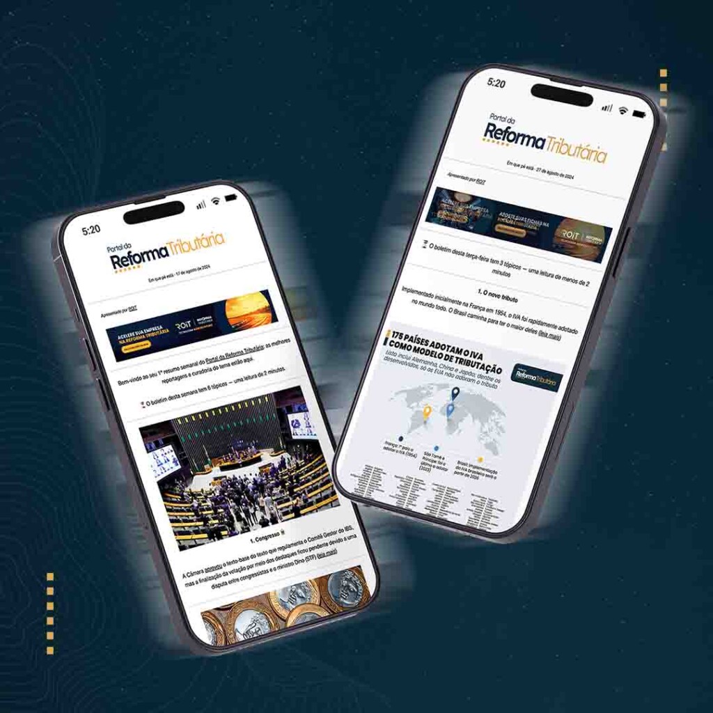 Seja você um empresário, tributarista ou simplesmente interessado nas questões fiscais do Brasil, nossa newsletter vai garantir que você esteja sempre informado sobre os desdobramentos do novo sistema. Acesse análises especializadas, infográficos explicativos e uma curadoria dos temas mais relevantes, tudo em primeira mão.