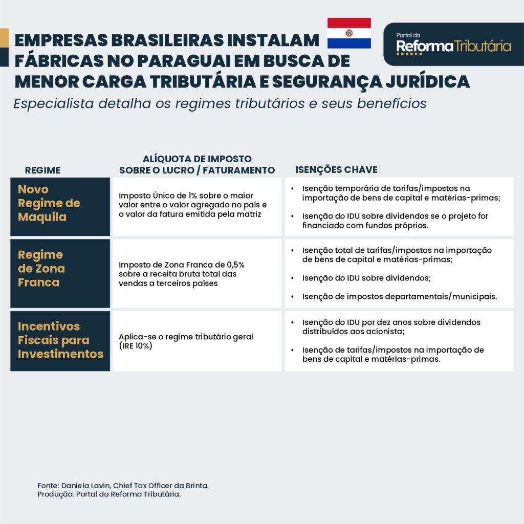 Segundo Daniela Lavin, Chief Tax Officer da Brinta, os fatores que mais pesam na escolha pelo Paraguai são benefícios tributários relevantes, regimes especiais de incentivos e um ambiente regulatório percebido como mais estável: