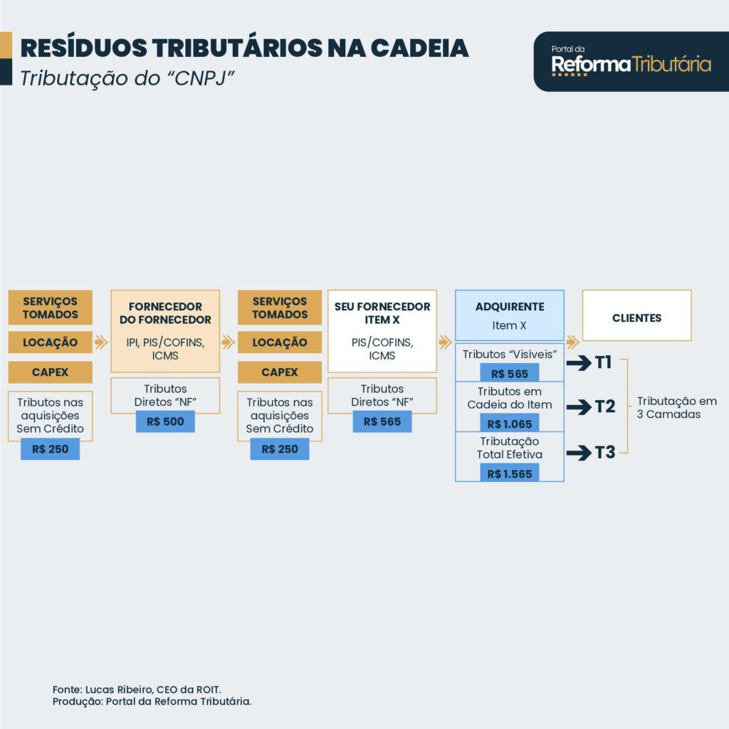 Ao concluir, Caroline detalhou que a identificação do resíduo tributário de um fornecedor decorre de um coeficiente específico, calculado a partir da análise do quanto dos tributos incidentes ao longo da cadeia produtiva efetivamente se transforma em custo: