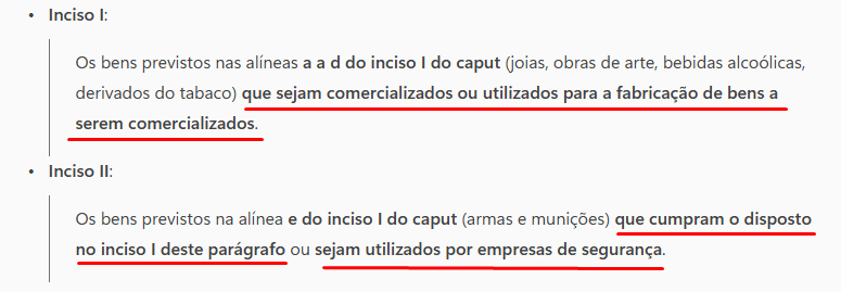 Essa previsão é relevante porque evita a penalização de setores legítimos que dependem desses bens para operar, como por exemplo:
