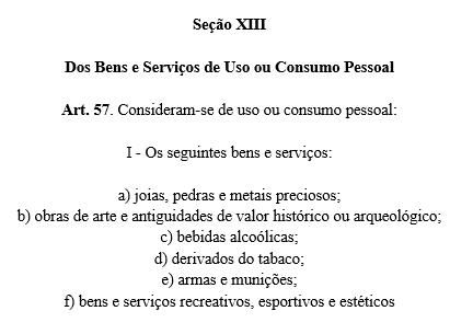 O parágrafo apresenta cinco incisos, que tratam de diferentes categorias de bens e serviços: