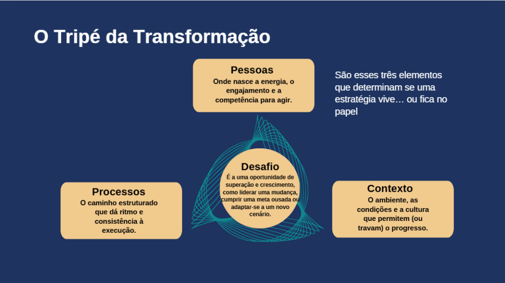 O sucesso dessa transição depende diretamente do equilíbrio entre Pessoas, Processos e Contexto — o Tripé da Transformação, conjunto de pilares que tem sustentado as empresas neste momento de validações intensas, ajustes sistêmicos e preparação para os impactos que só serão totalmente sentidos no próximo ano.