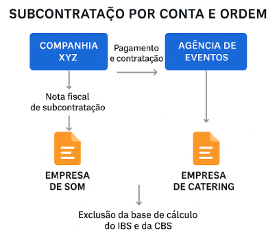 Se considerarmos, a título de exemplo, onde temos um contribuinte contratação de serviços de agências publicitárias, eventos ou marketing, para que essas possam excluir da base de cálculo do IBS e CBS, os valores por elas incorridos para a contratação de bens e serviços junto a terceiros cujo beneficiário final é o contribuinte contratante, os documentos fiscais deverão ser emitidos pelas agências em nome do beneficiário.