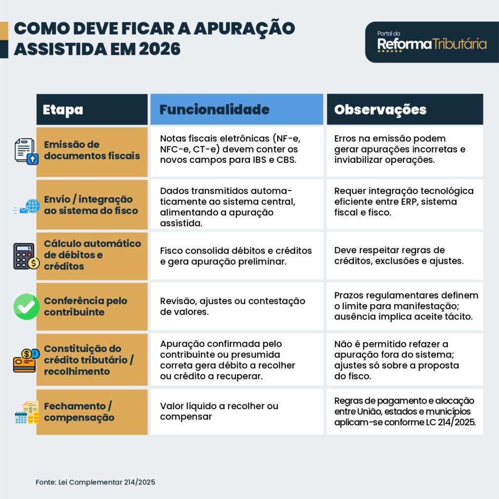 Prevista no artigo 46 da LC 214/2025, a apuração assistida consiste em um mecanismo em que o fisco consolida automaticamente débitos e créditos de IBS e CBS com base nas informações dos documentos fiscais eletrônicos e de outros registros do contribuinte.