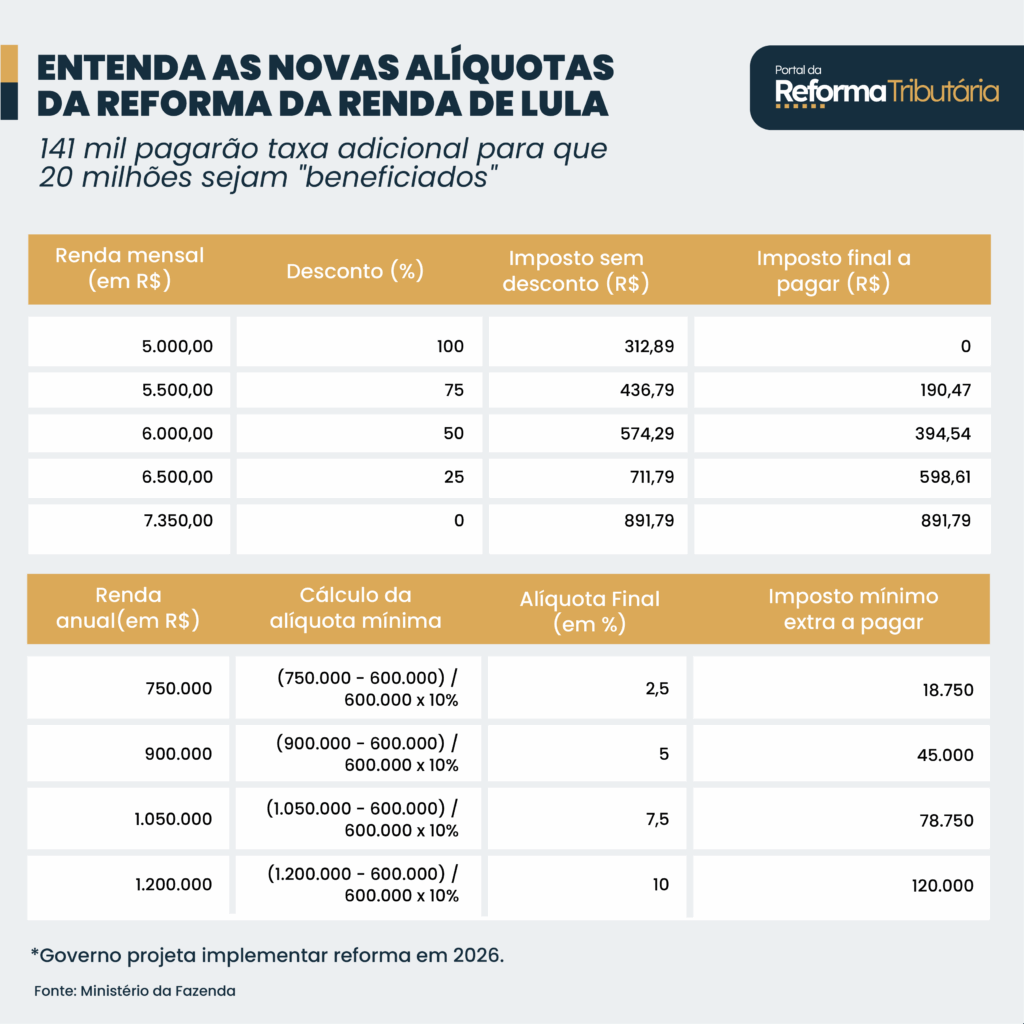 A proposta foi idealizada pela equipe econômica de Lula. A nova regra entra em vigor a partir de 2026 –ano em que o petista tentará reeleição.