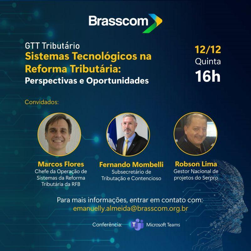 A Brasscom (Associação das Empresas de Tecnologia da Informação e Comunicação e de Tecnologias Digitais) realiza nesta quinta-feira (12/12), às 16h, reunião online sobre “Sistemas Tecnológicos na Reforma Tributária: Perspectivas e Oportunidades”.