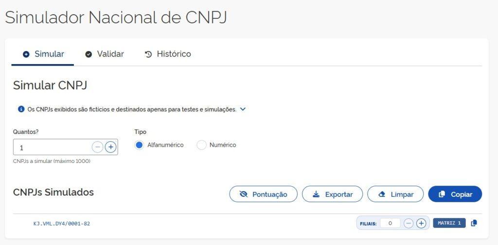 A Receita Federal disponibilizou o Simulador Nacional de CNPJ, ferramenta criada para gerar números de CNPJ exclusivamente fictícios, destinados a desenvolvimento, testes e simulações de sistemas.